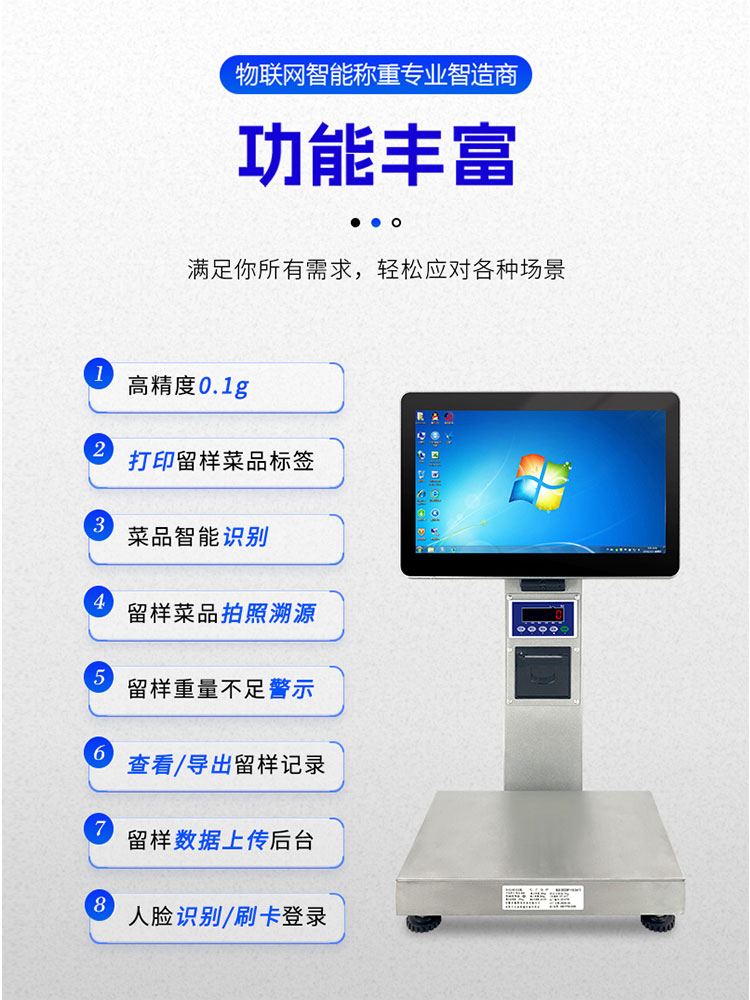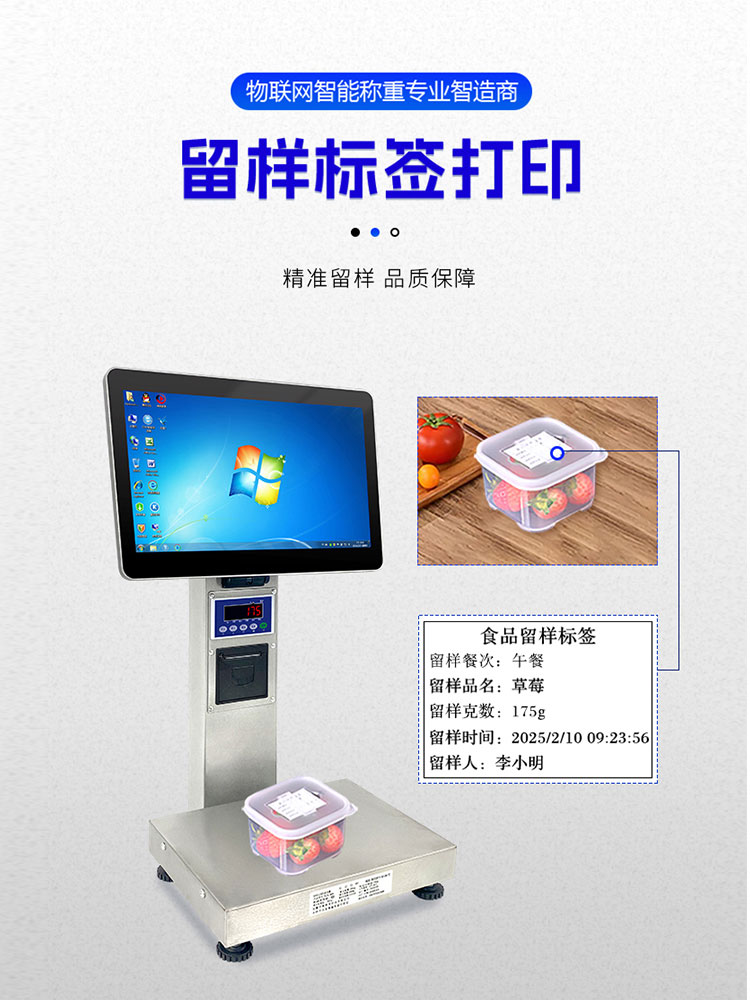 留樣秤,通常指配備了留樣管理功能的智能秤或溯源秤。它不僅能稱重,還能自動記錄、打印溯源標簽(包含菜品名稱、生產日期、時間、操作員等信息),并與后臺食品安全管理系統相連。它的引入,遠不止是換了一個稱重工具,而是對學校食堂食品安全管理體系的一次系統性升級