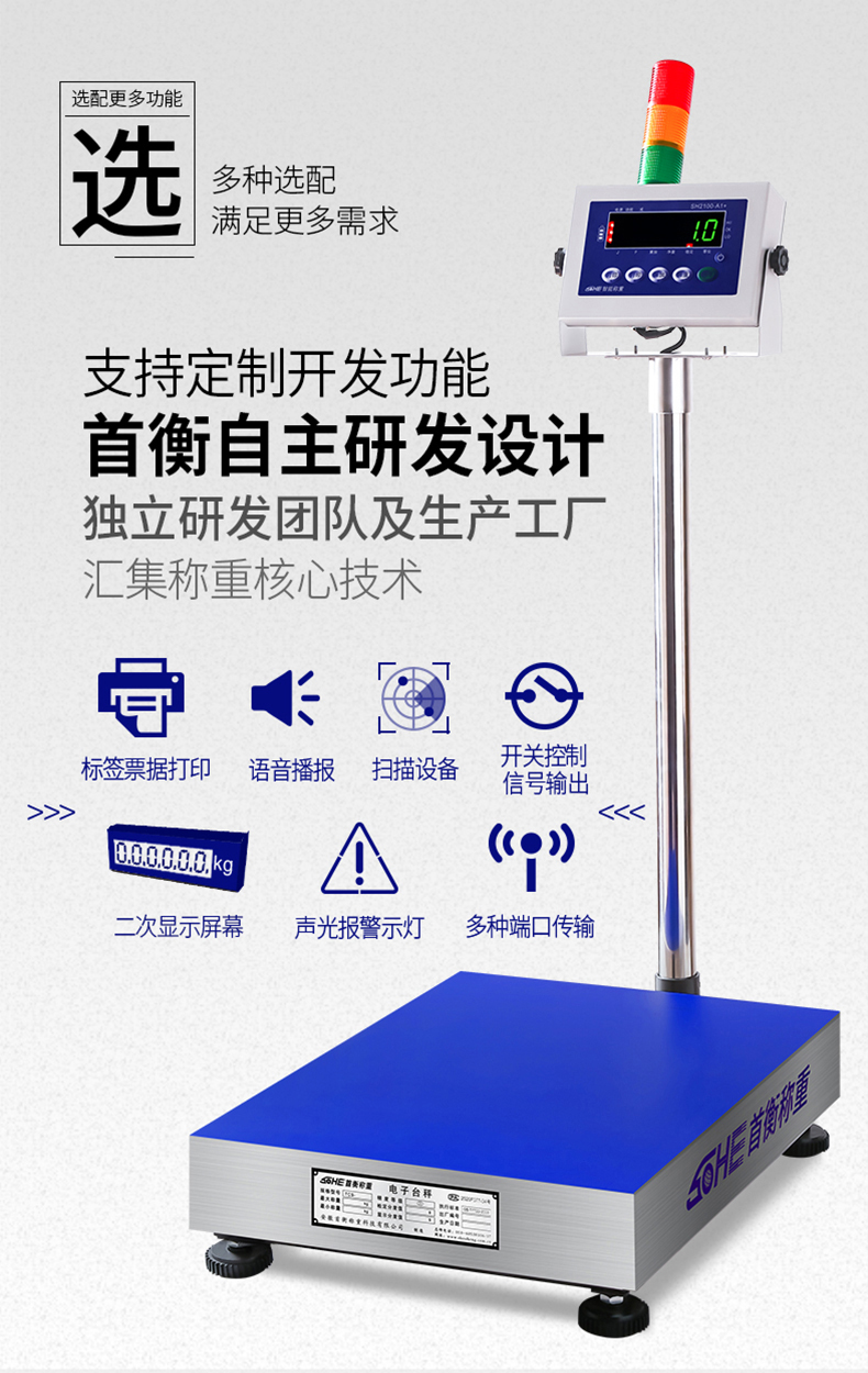 智能電子秤、打印秤、智能分揀秤、臺秤、檢重秤、首衡電子秤、智能三合一電子秤、報警電子秤、聲光電子秤、上下限電子秤